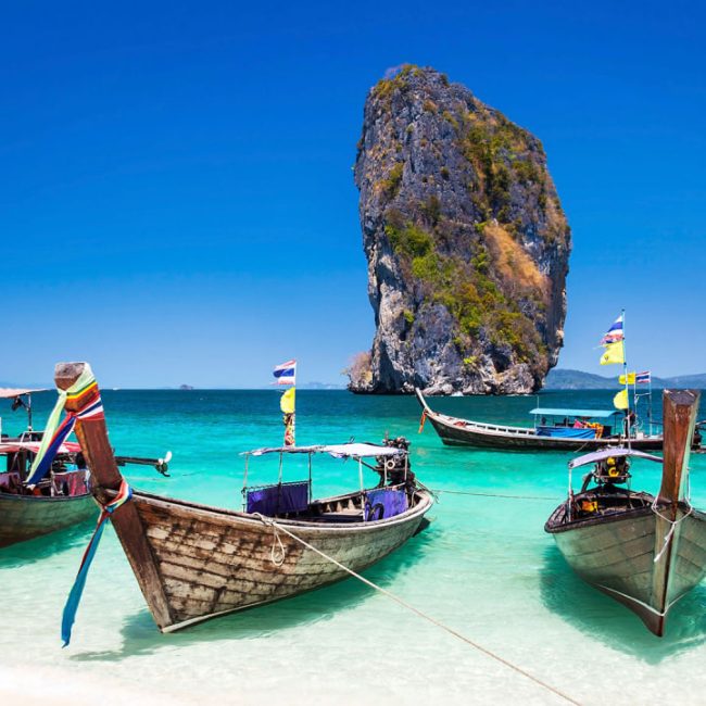 Petit-déjeuner à l’hôtel, puis transfert à l’aéroport de Bangkok pour prendre votre vol direction Krabi.